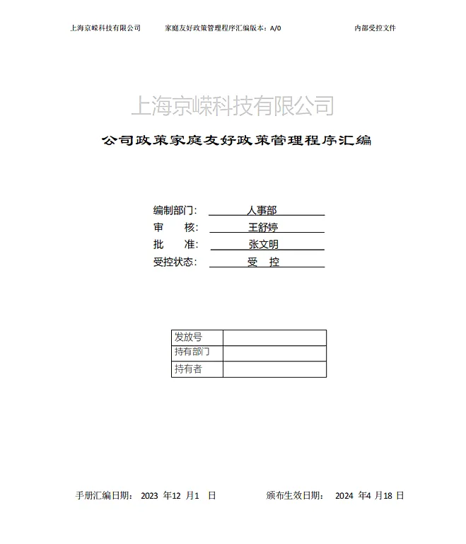 2023年12月,企業結合FFF專家團隊調研分析結果與建議和管理現狀對原有FFF相關政策與管理制度進行了全面完善,政策覆蓋面從員工子女教育與就業、女性工作場所安全到女性員工領導力與晉升等多項FFF議題。2024年4月,企業完成了家庭友好政策和家庭友好政策管理程序匯編的編寫與修訂工作,并正式頒布了家庭友好政策。