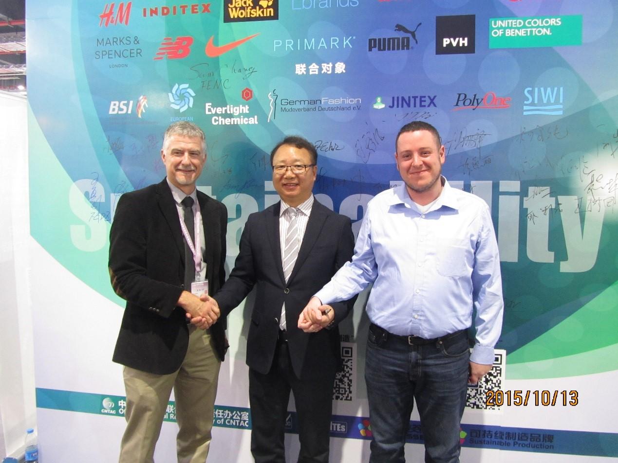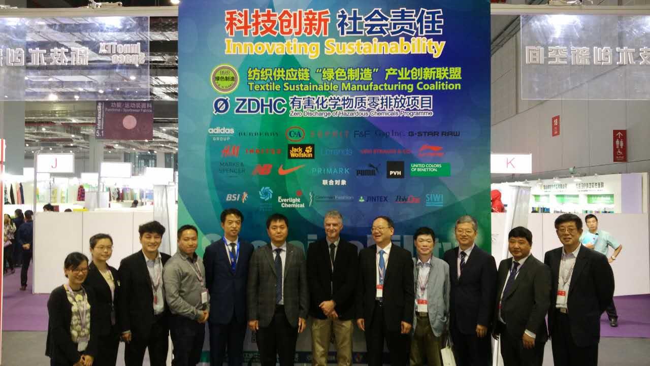 行業領導在了解“科技創新社會責任”主題后與ZDHC全球技術總監Scott Echols,C&A全球可持續化學采購負責人Adam及Adidas,ZARA等國際品牌代表一起簽名,為行業點贊綠色制造。