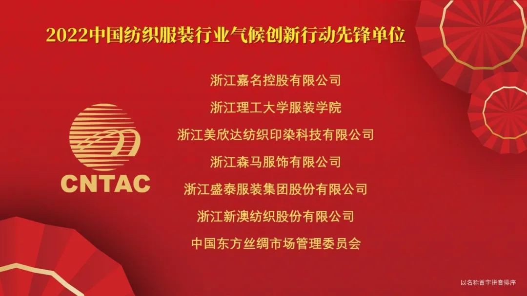 在12月29日舉行的2022年中國紡織大會上,中國紡織工業聯合會對55家“中國紡織服裝行業氣候創新行動先鋒單位”和65位“中國紡織服裝行業氣候創新行動先鋒貢獻者”進行了通報表揚。