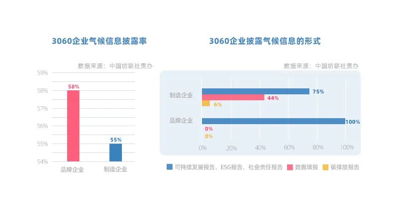 3060企業中超過半數企業已開展氣候信息披露。品牌企業主要通過發布企業年度可持續發展報告進行披露,制造企業也通過國內外第三方平臺進行數據填報。企業還通過開展各類低碳公眾宣傳活動傳遞可持續理念?;顒觾热莅ɡ砟钚麑?、環保產品和企業氣候行動的宣傳以及開展環保回收等,形式覆蓋線上和線下,受眾群體包括消費者、學生和行業伙伴等。